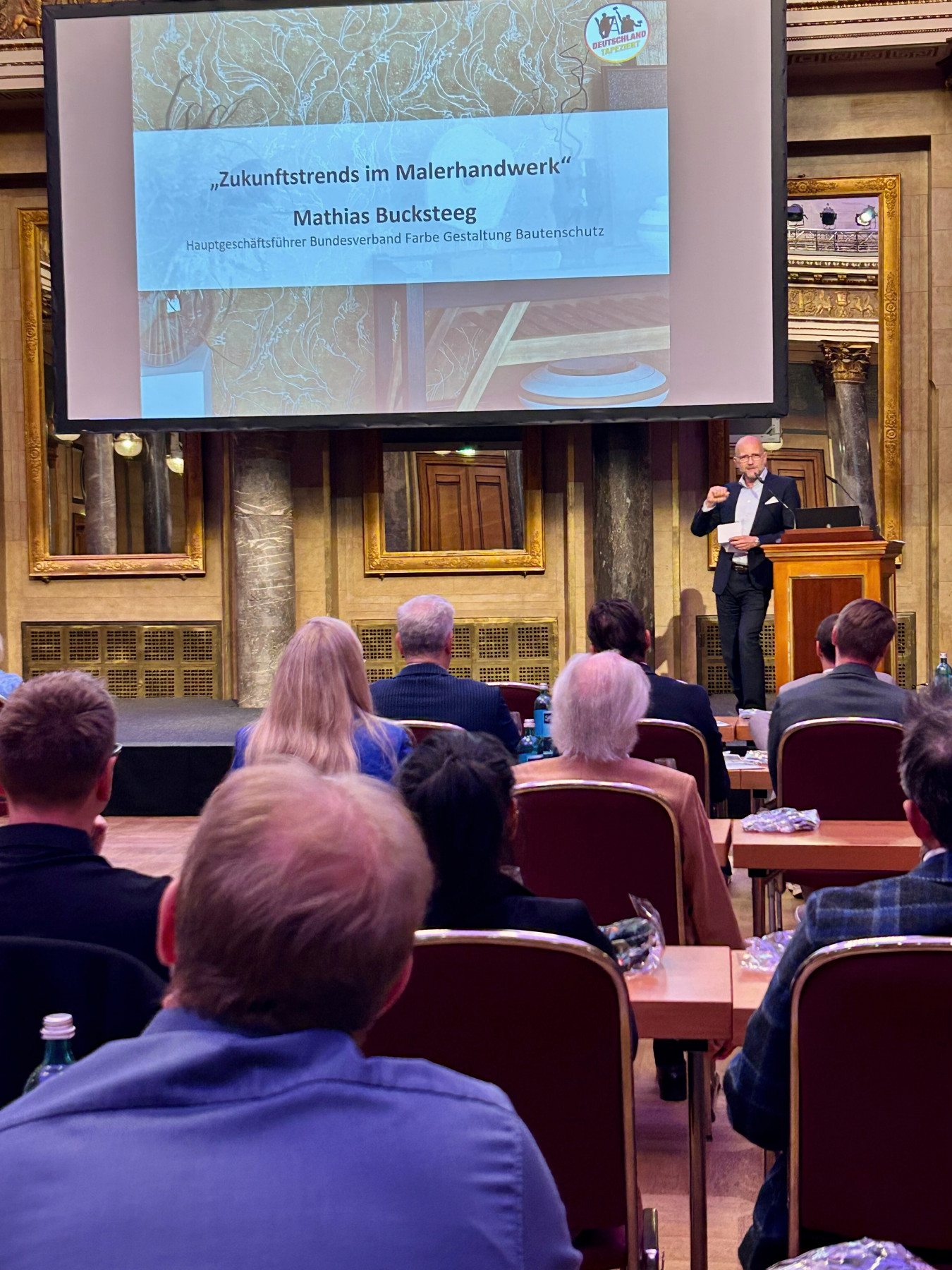 Mathias Bucksteeg, Hauptgeschäftsführer des Bundesverbands Farbe Gestaltung Bautenschutz, gab Einblicke in Megatrends wie die Konsolidierung kleiner Betriebe und Franchise-Modelle. Außerdem betonte er die Relevanz des Malerhandwerks für die Branche: „Rund zwei Milliarden Euro Umsatz machen Maler mit Tapezierarbeiten – trotz Personalmangel.“ Die Industrie sei gefordert, stärker auf das Profihandwerk einzugehen und praxisnahe Lösungen zu bieten.