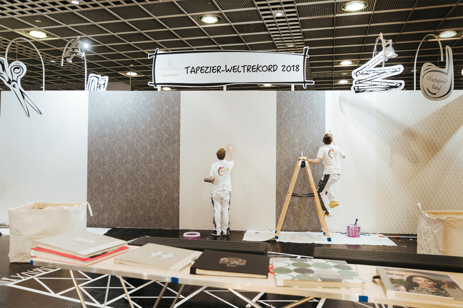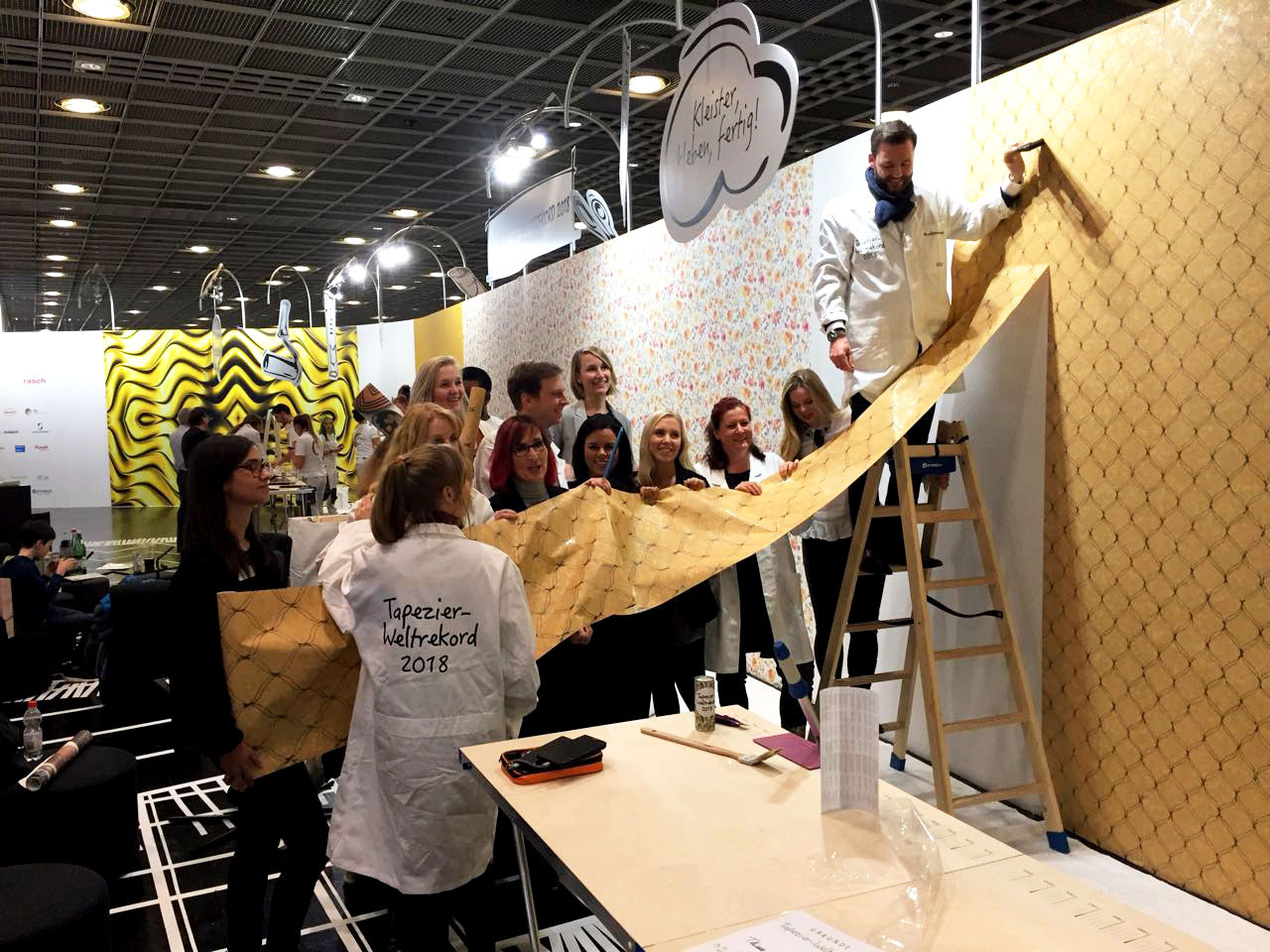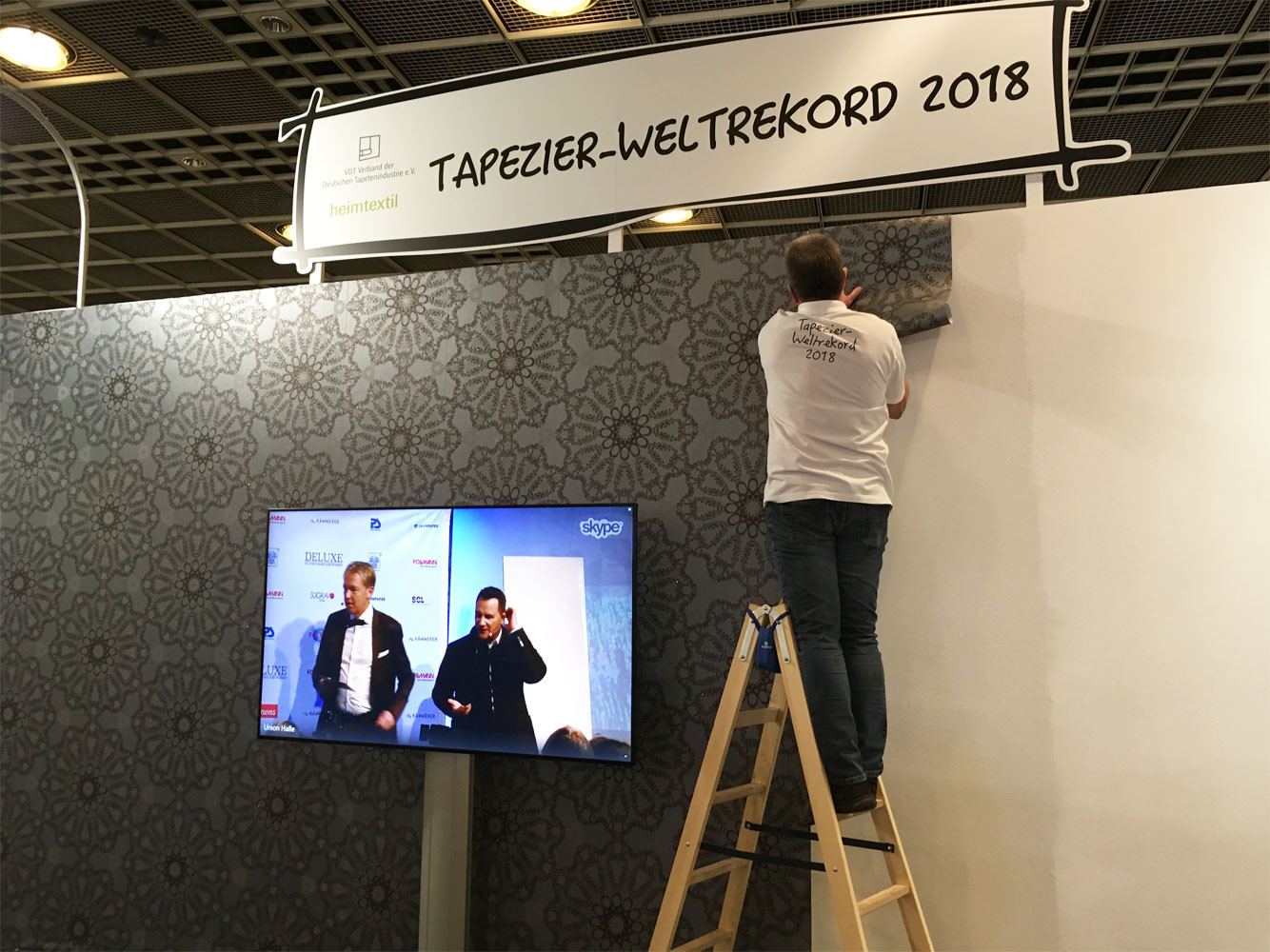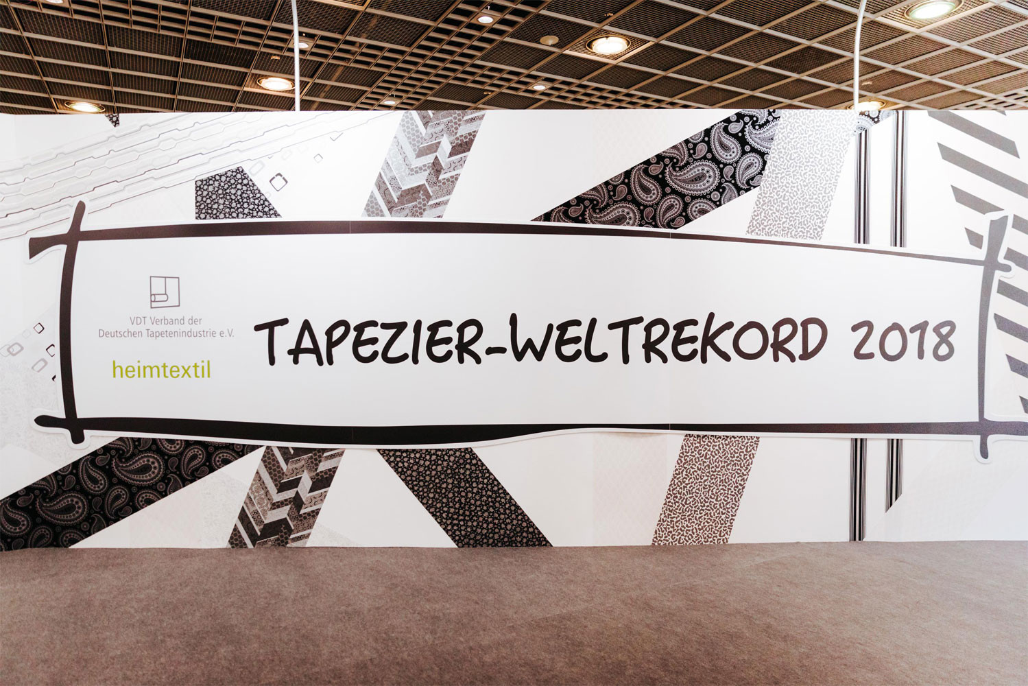 Über den gesamten Messezeitraum der Heimtextil stellte der Verband der Deutschen Tapetenindustrie e.V. (VDT) in Zusammenarbeit mit der Heimtextil einen spektakulären Weltrekord im Dauertapezieren auf. Auf einer riesigen Wandfläche tapezierten Teams – vom Meister bis zum Lehrling – 96 Stunden Tapetenmuster ihrer Verbandsmitglieder. Rund um die Uhr, vier Tage und Nächte, wurde bis zum letzten Messetag (Freitag, den 12. Januar, 12.00 Uhr) tapeziert. Während der gesamten Aktionszeit unterstützten Prominente, wie TV-Moderatorin Resi Colter, “die Maus”, die amtierende “Miss-DIY” Kerstin Weiser und Star-Designer Guido Maria Kretschmer die einzigartige Aktion.