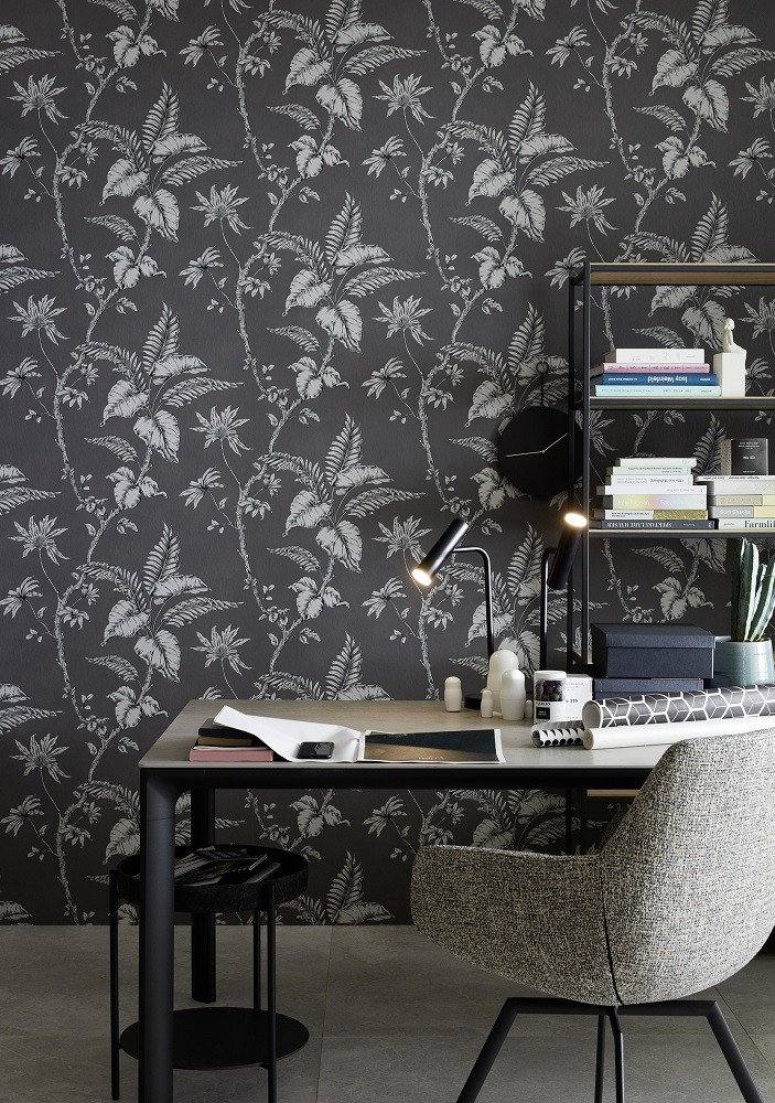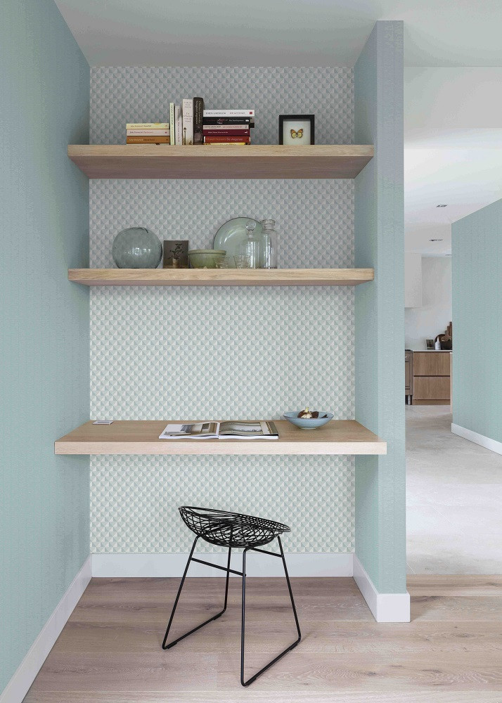 Tapeten können Bereiche wie die Arbeitsecke im Wohnzimmer, Schlafzimmer oder Flur optisch von anderen Wohnbereichen trennen. Damit wird signalisiert, dass es hier einen persönlichen Bereich zum Arbeiten gibt. Vor allem aber können Tapeten einen professionellen Rahmen für die Arbeit im Homeoffice schaffen und mit zurückhaltenden Mustern in dezenten Farben etwa für eine ruhige Atmosphäre sorgen.